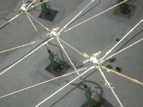 3、钢丝绳强度按1670N/mm2,常用钢丝绳强度有1570、1670、1770、1870、1960N/mm2,安全系数一般取6,静态张拉的钢丝绳安全系数可取3-4。